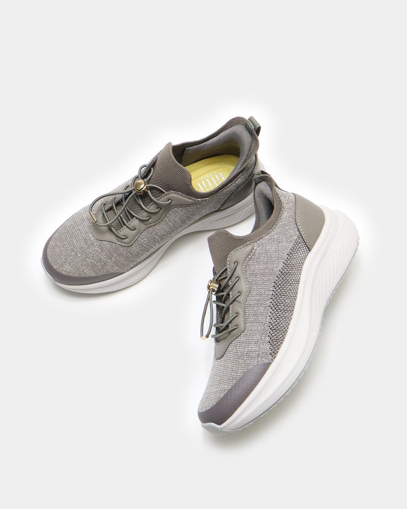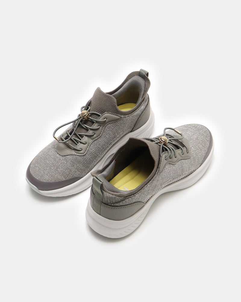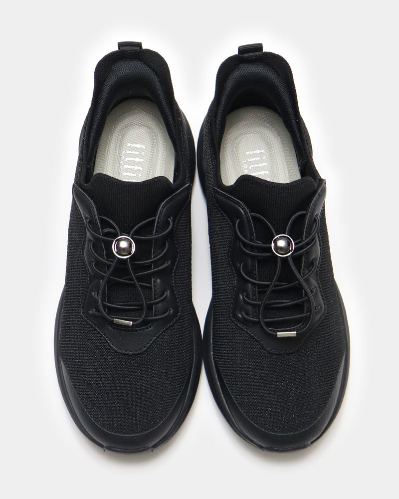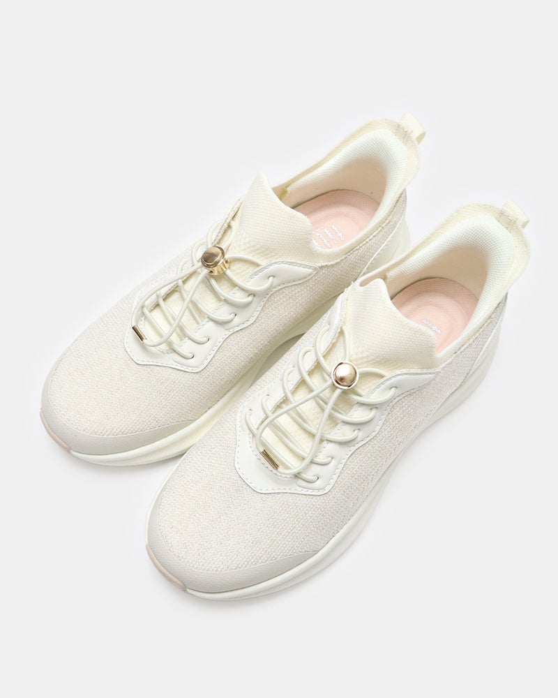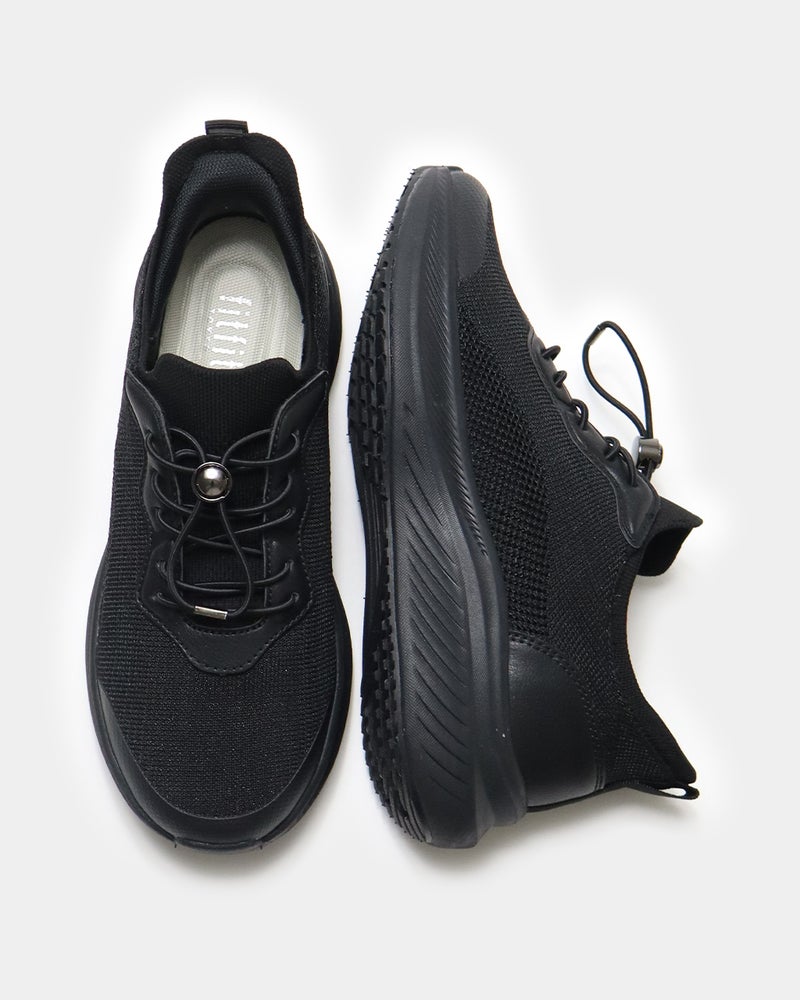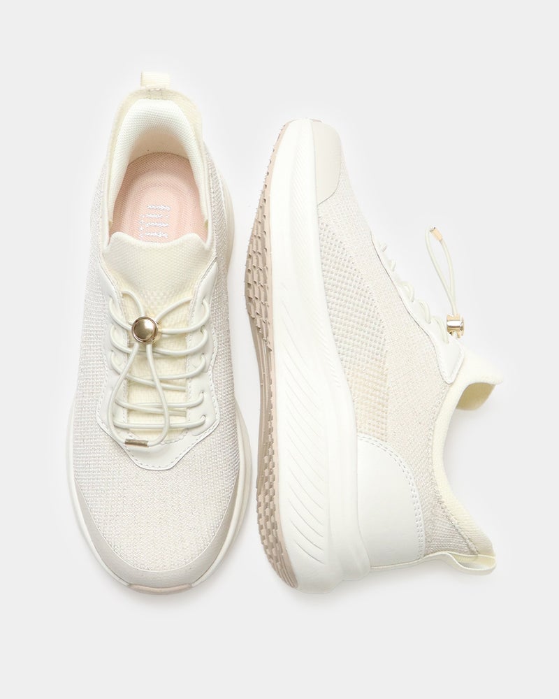 ストンと履ける、弾む脚長厚底。 片手でも調整可能なドローストリング仕様のゴム紐により、すっと履けてぱっと脱げる利便性を実現し、包み込むようなフィット感とストレスフリーな履き心地を両立した厚底スニーカー。 伸縮性と通気性にすぐれたラメニット素材を採用し、履き口まわりの仕様を改良することで、より美しい仕上がりと足当たりの良さを追求しました。 木型は少しワイドなラウンドトゥで、指先に解放感を持たせつつトレンド感のあるシルエットに。 アウトソールは脚長効果のある約5.5㎝のボリュームソールで、硬度の低いクッション性のあるEVAを使用し、弾むような履き心地を実現。 底面のラバー部分を最小限に抑えることで軽さと屈曲性を両立しています。 インソールはラテックス性のプニプニとした感触で、履いた瞬間から快適なクッション性を実現。 通気孔と抗菌防臭メッシュにより靴内を快適に保ちます。 アッパーはニットの一体構造で羽根の重なりが少なく、足がスムーズに入りやすく、丸ゴム紐は金具でつなぎ目を安定させ簡単にフィット感を調整可能です。 踵にはモールドパーツを内蔵し、歩行時の踵浮きを防止しつつへたりにくい仕様に。 軽さと弾力性に特化したfitfitハンズフリーシリーズの一足として、包み込むようなフィット感とストレスフリーな履き心地をで、アクティブな毎日を支えます。 タックワイドパンツやストレートシルエットのスカートにも合わせやすく、ボリュームソールが足元に鮮度をプラスしてくれる一足です。