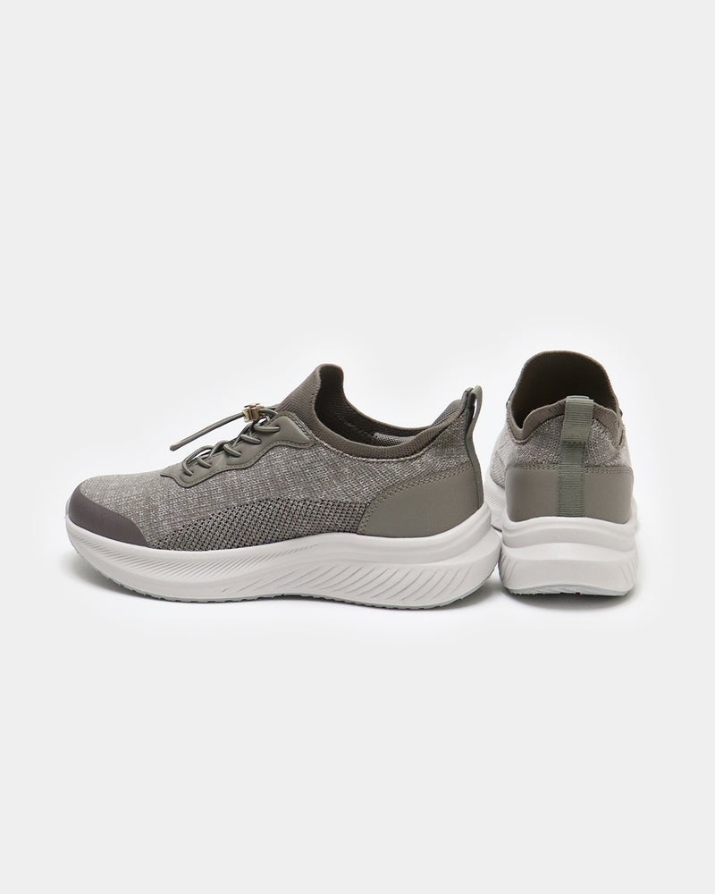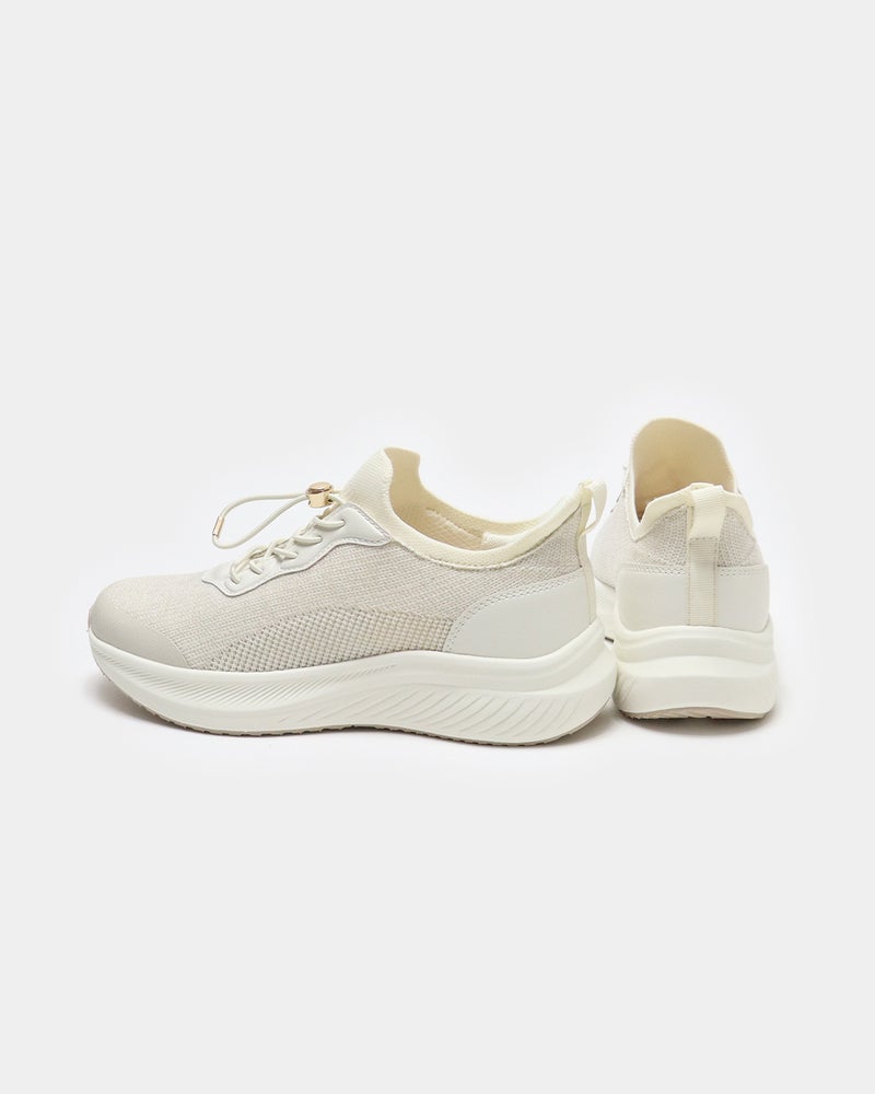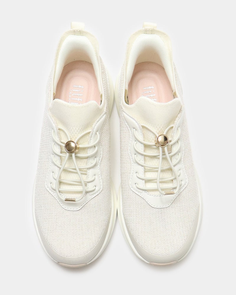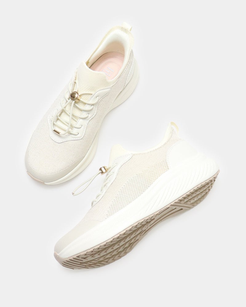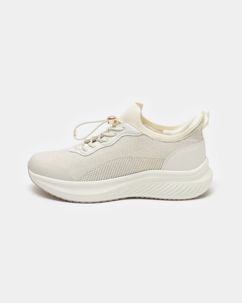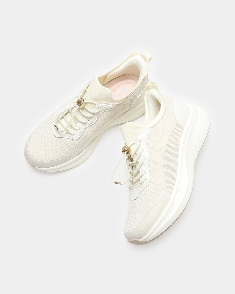 ストンと履ける、弾む脚長厚底。 片手でも調整可能なドローストリング仕様のゴム紐により、すっと履けてぱっと脱げる利便性を実現し、包み込むようなフィット感とストレスフリーな履き心地を両立した厚底スニーカー。 伸縮性と通気性にすぐれたラメニット素材を採用し、履き口まわりの仕様を改良することで、より美しい仕上がりと足当たりの良さを追求しました。 木型は少しワイドなラウンドトゥで、指先に解放感を持たせつつトレンド感のあるシルエットに。 アウトソールは脚長効果のある約5.5㎝のボリュームソールで、硬度の低いクッション性のあるEVAを使用し、弾むような履き心地を実現。 底面のラバー部分を最小限に抑えることで軽さと屈曲性を両立しています。 インソールはラテックス性のプニプニとした感触で、履いた瞬間から快適なクッション性を実現。 通気孔と抗菌防臭メッシュにより靴内を快適に保ちます。 アッパーはニットの一体構造で羽根の重なりが少なく、足がスムーズに入りやすく、丸ゴム紐は金具でつなぎ目を安定させ簡単にフィット感を調整可能です。 踵にはモールドパーツを内蔵し、歩行時の踵浮きを防止しつつへたりにくい仕様に。 軽さと弾力性に特化したfitfitハンズフリーシリーズの一足として、包み込むようなフィット感とストレスフリーな履き心地をで、アクティブな毎日を支えます。 タックワイドパンツやストレートシルエットのスカートにも合わせやすく、ボリュームソールが足元に鮮度をプラスしてくれる一足です。