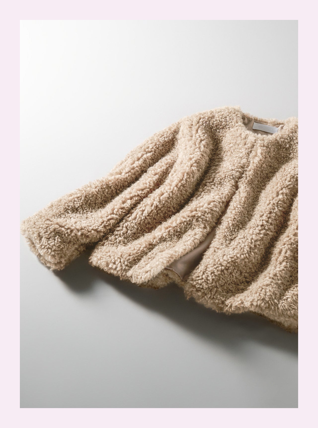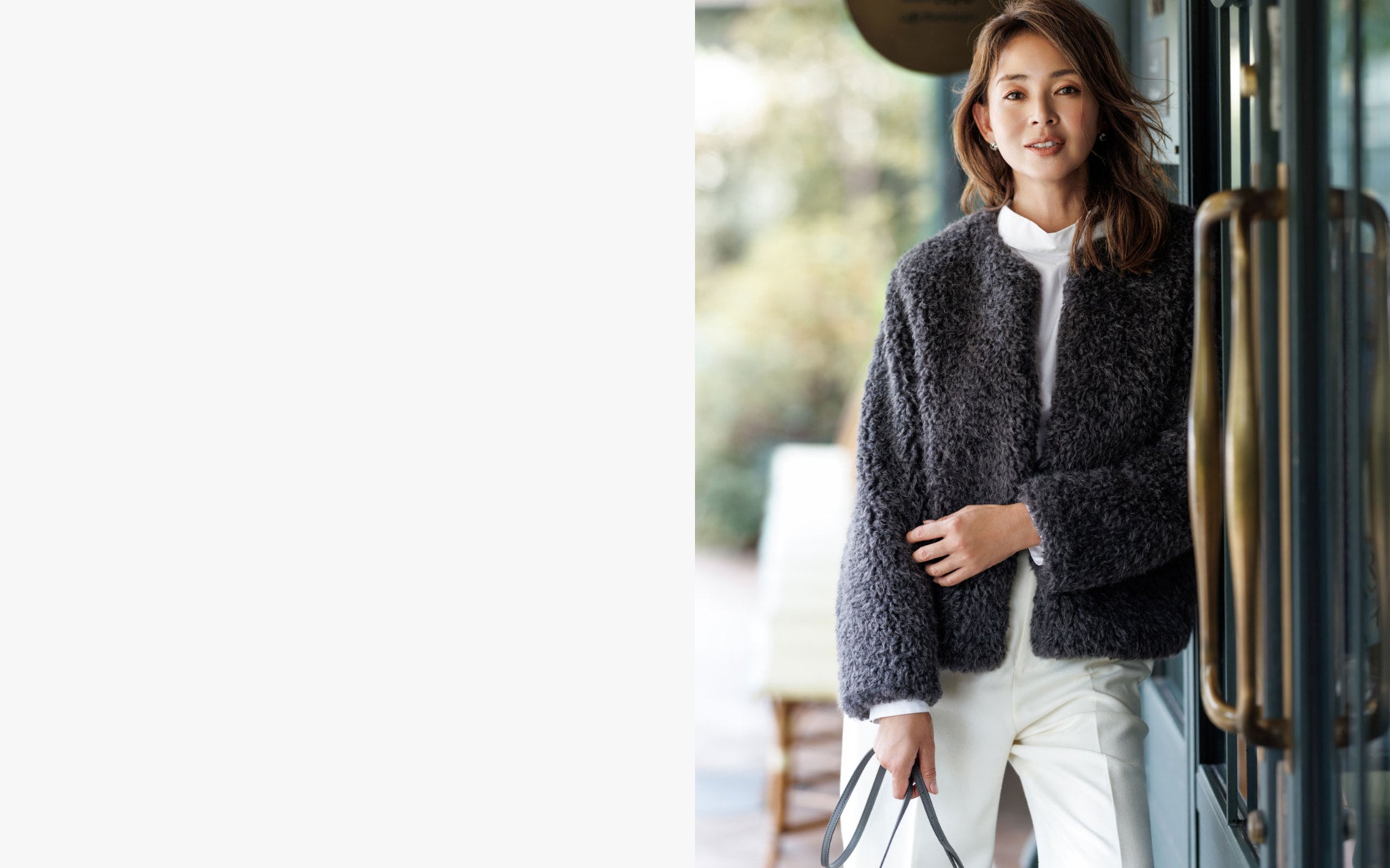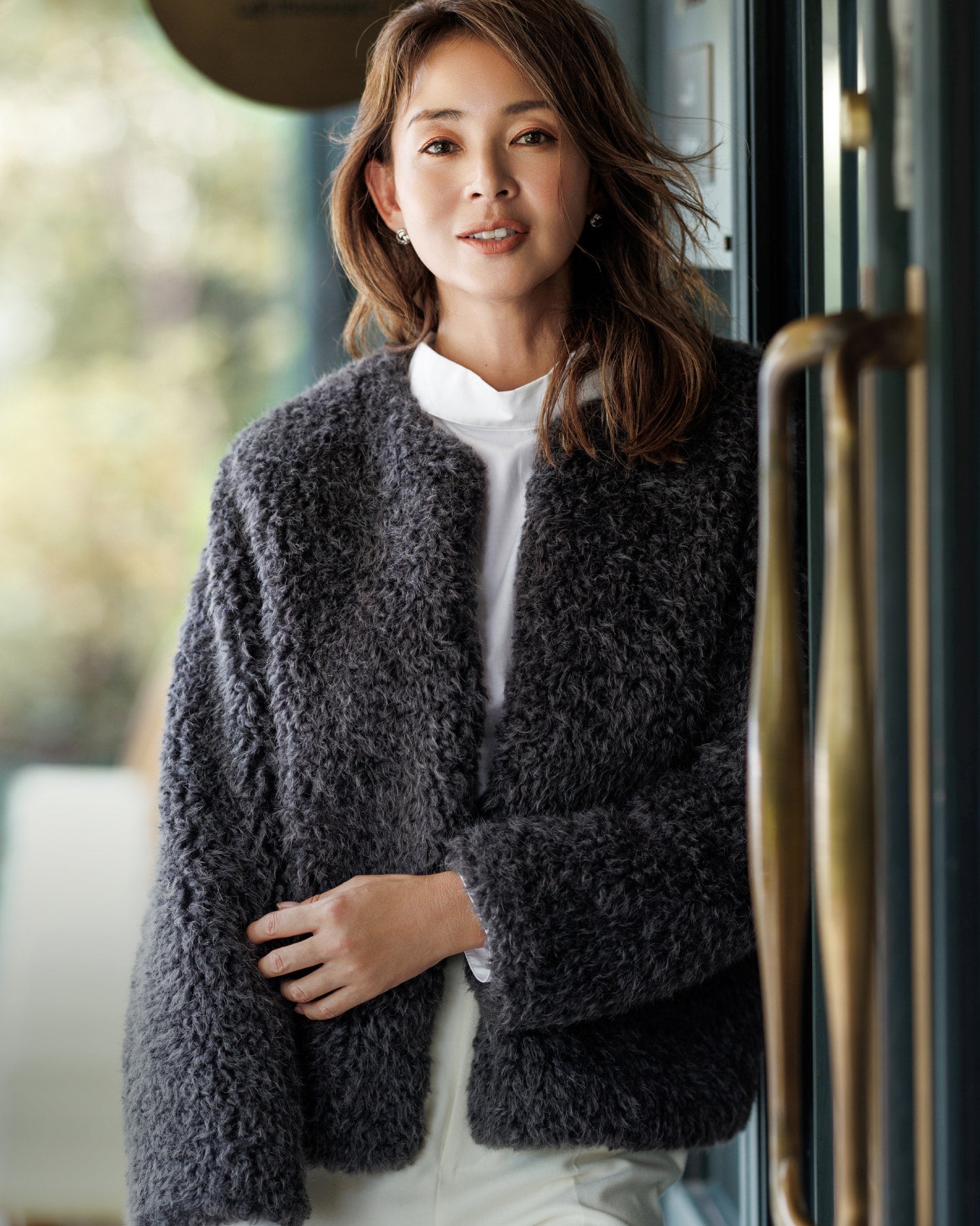 大人の冬の着こなしに華を添えてくれる、巻き毛のようなプードルファー。エコ素材の糸をループ状に織り上げることで叶えた、ふんわり軽くてストレスフリーな着心地がポイント。プードルファーならではのモコモコ質感が映えるよう、ゆったりシンプルなデザインで仕上げました。