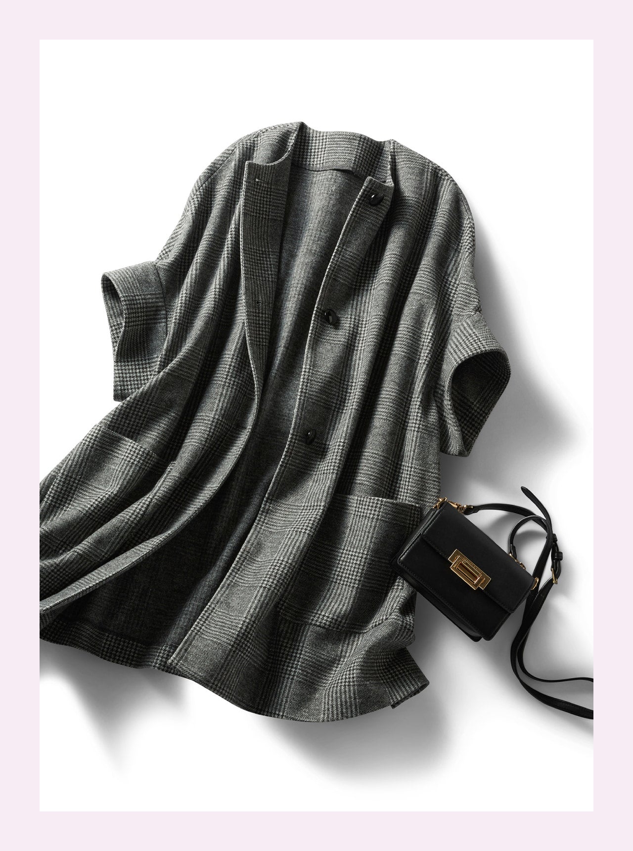 クラシックでありながら大人の可愛さも堪能できるのが、ゆったりフォルムで仕立てたポンチョコート。ふんわり起毛したニードル生地を1枚仕立てにして、秋から冬のはじまりにぴったりのほどよいぬくもりに。短めの袖丈はインナーやロンググローブをお洒落のアクセントにして。