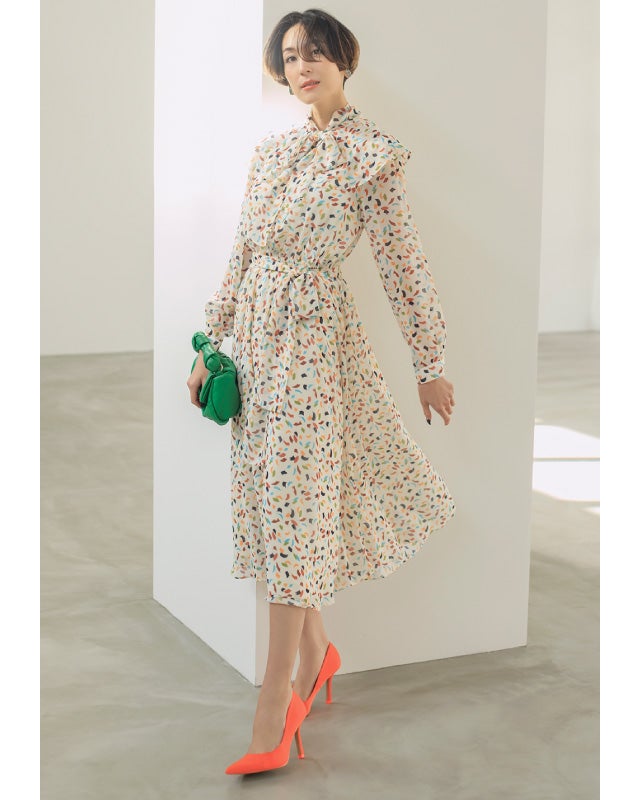 2WAY衿・プリントシフォン ワンピース