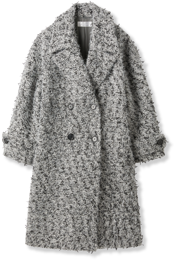 モノトーンスタイルが好きなので、冬は特にアウターがおしゃれのキーアイテムに。ファンシーツイードのシャギーコートは、聞くとフランスの生地なのだとか。白、黒、遠目にはアイスグレーにも見える美しいカラーに惹かれました。肩の収まりが良くて、オーバーサイズの美しいシルエット。今どきのムードがほどよく感じられるのもいいですよね。黒のニットとパンツのミニマルスタイルの輪郭にすれば、絵になる着こなしに。繊細なレースがドッキングしたニットも、シンプル好きにはたまりません!