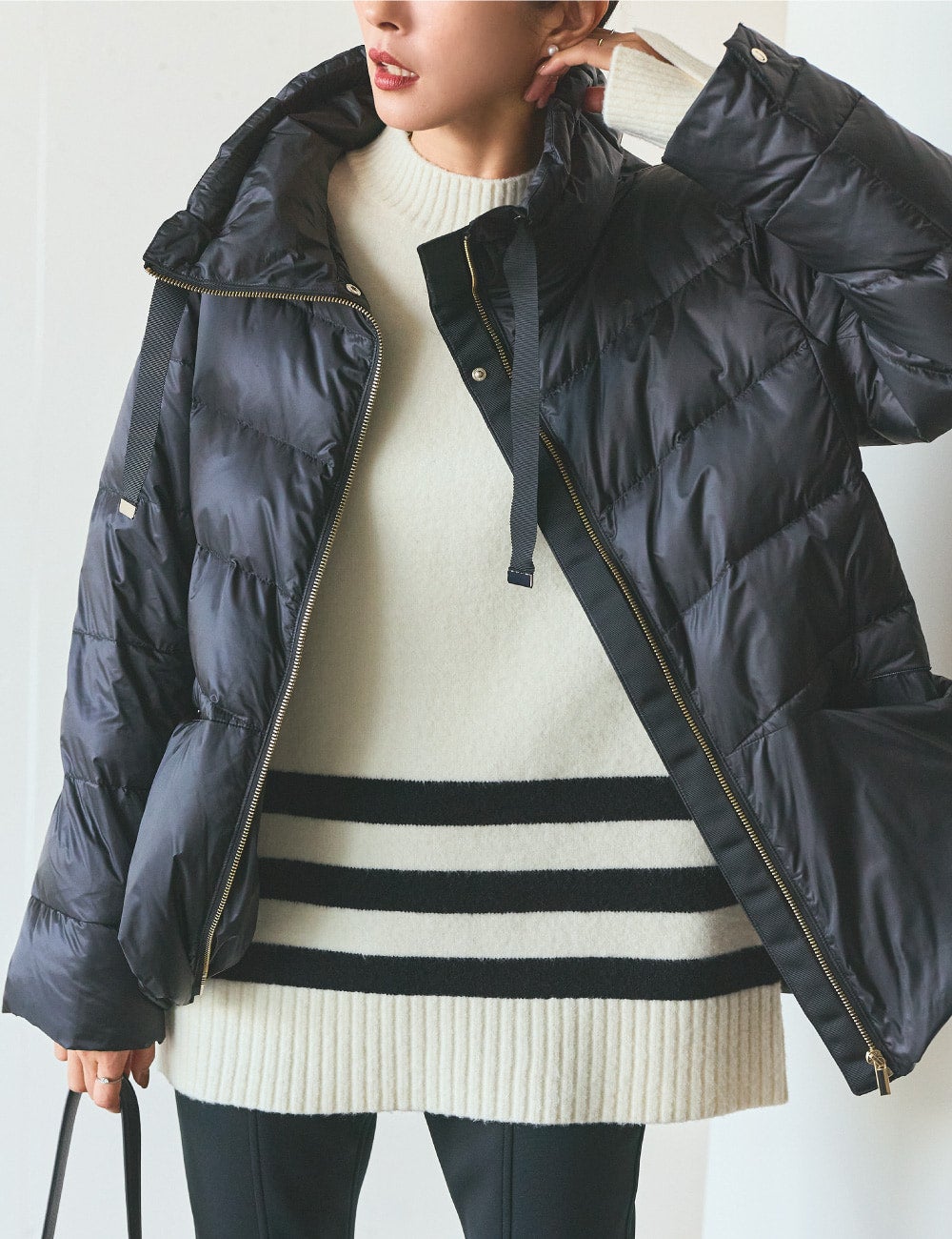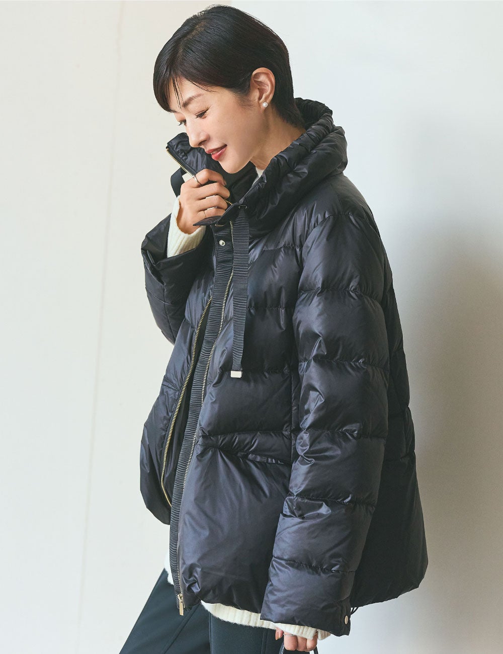 シルエットがアレンジできたり、ディテールも小粋で、とっても絶妙・・・! デニムやスカートとつい無難に着こなしてしまいがちですが、このダウンジャケットとなら、新しい着こなしに挑戦できますね。例えば、オーバーシルエットのニットに、レギンスをブーツインして。冬のカジュアルスタイルがぐっと新鮮に。防寒はもちろん、シティにも映えるファッションピースとしてのアウターとしても活躍必須の一枚ですね。