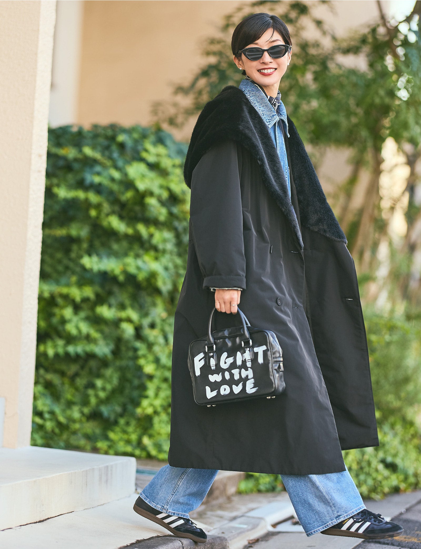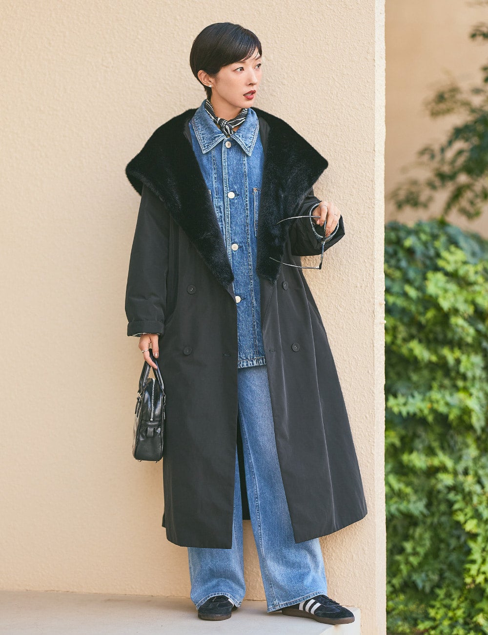 ロング丈のビッグシルエットのコートは纏うだけで圧倒的にドラマティック。まさに、これからの季節ならではのお楽しみ。マジカルサーモの機能素材で、さらにたっぷりと大きなファーの襟がアクセントになったこちらのコートは、ゴージャスに傾きすぎない軽やかさがポイント。カジュアルに合わせても、印象をさりげなくアップグレードしてくれます。大好きなデニムオンデニムスタイルに合わせてみたら冬らしいリッチ感も加わってグッドバランスに。