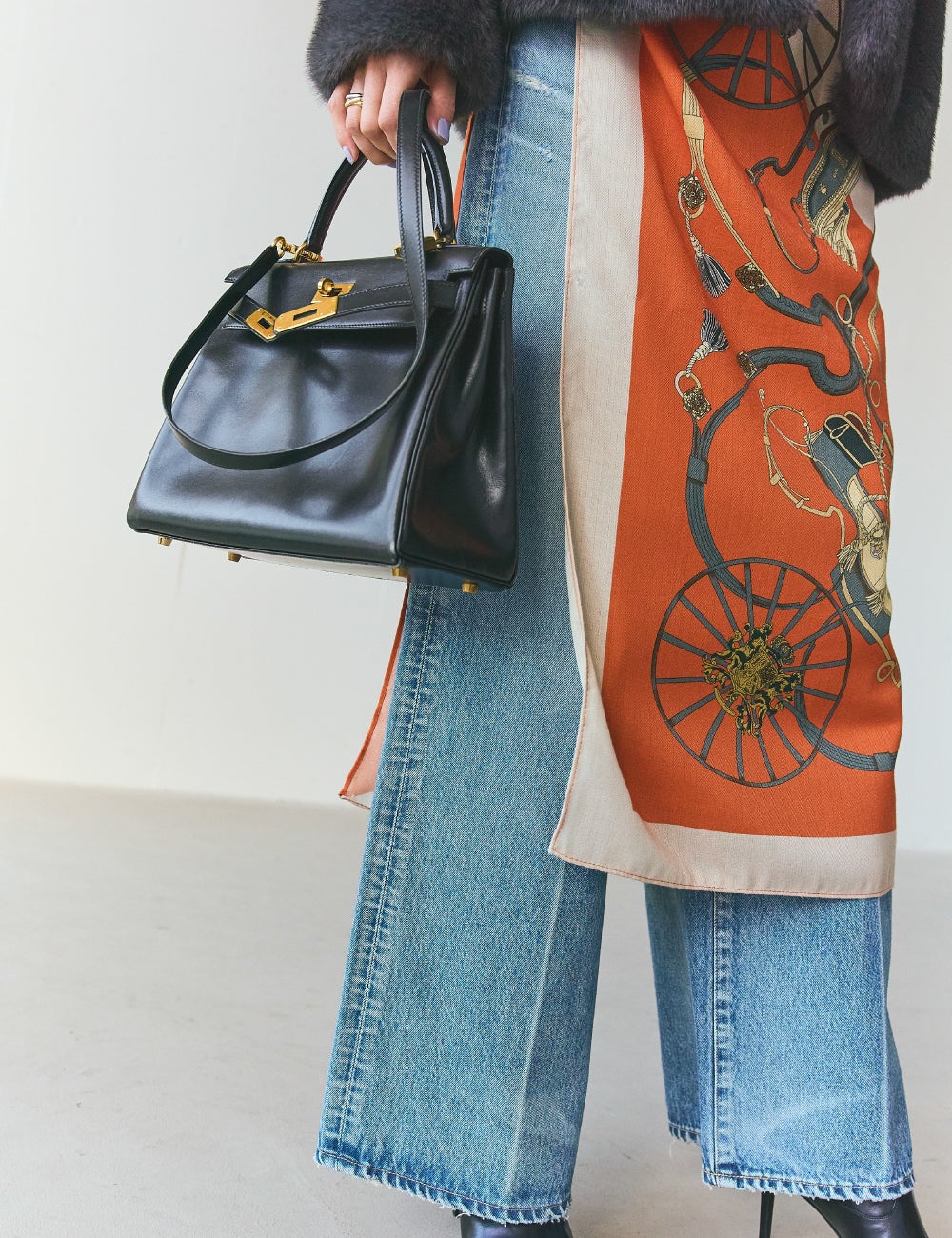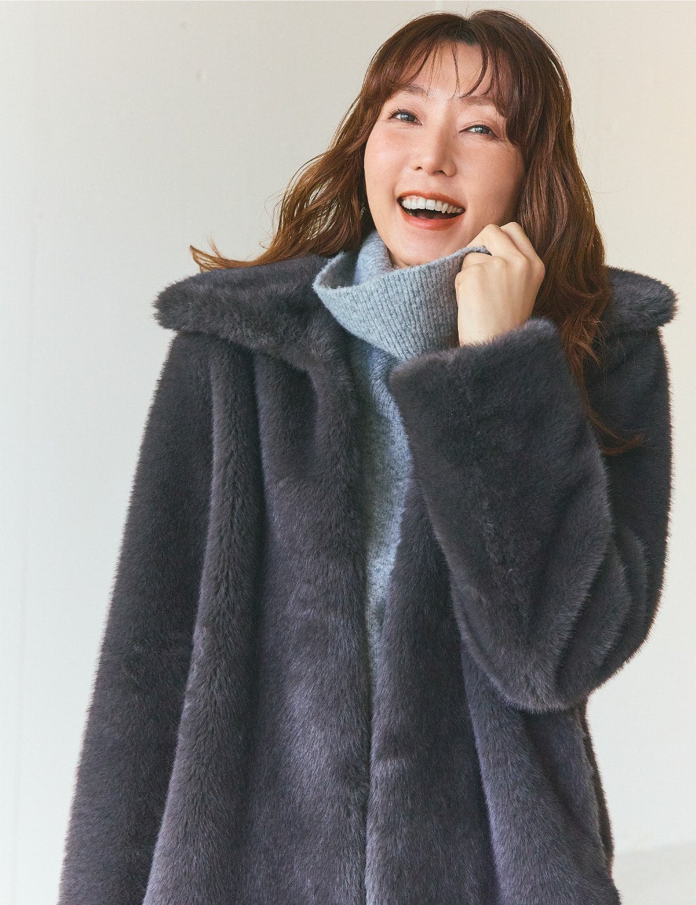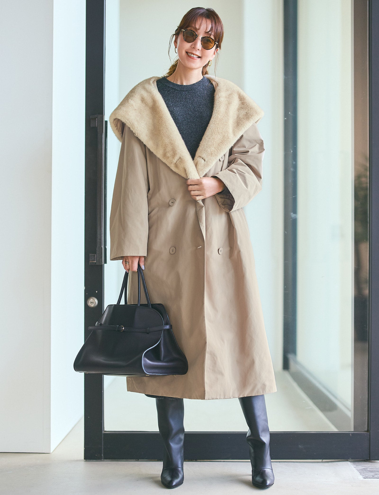 リラクシーなシルエットの旬顔のミンク調のアウターは、まさに一目惚れアイテム。 この絶妙なニュアンスカラーとこの贅沢な質感がたまりませんね。サッと羽織ってアウトラインにすれば、大好きなデニムのスタイリングが一気に今年らしくなって、また違う気分に。挑戦してみたかった スカーフのアレンジもしっくりとマッチして、冬のおしゃれがぐっと楽しくなりました。