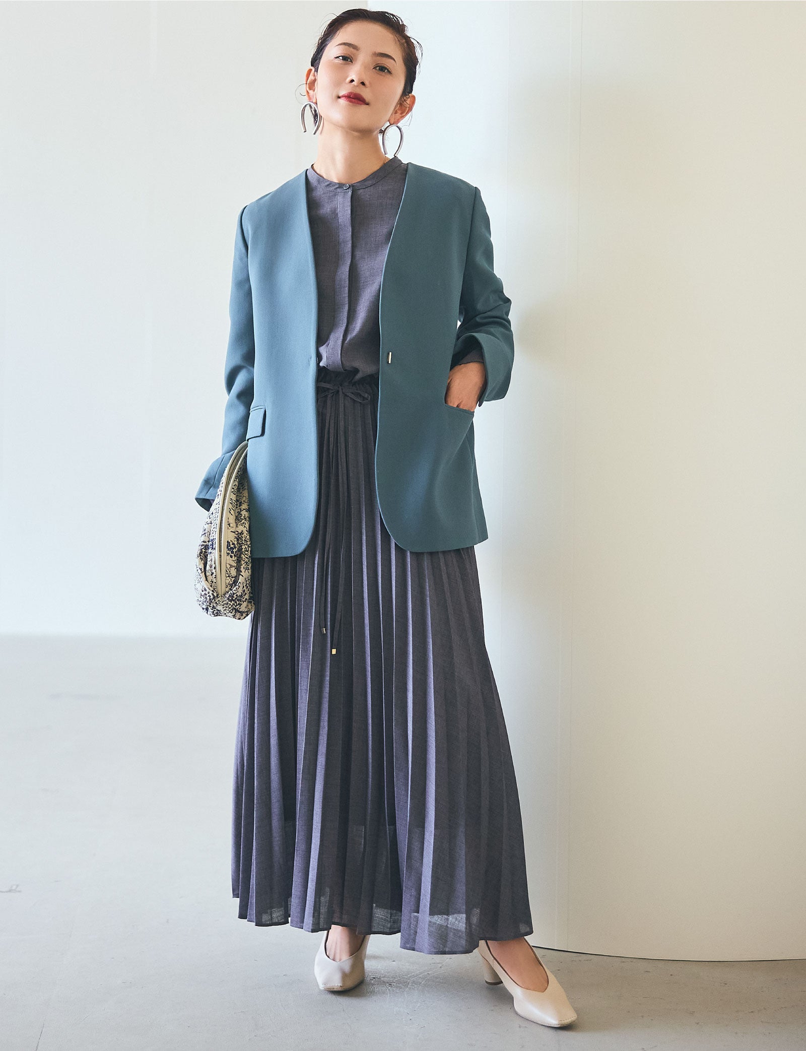 「お洋服は色から選ぶ」という白澤さんらしく、スタイリングの配色にセンスが光ります。