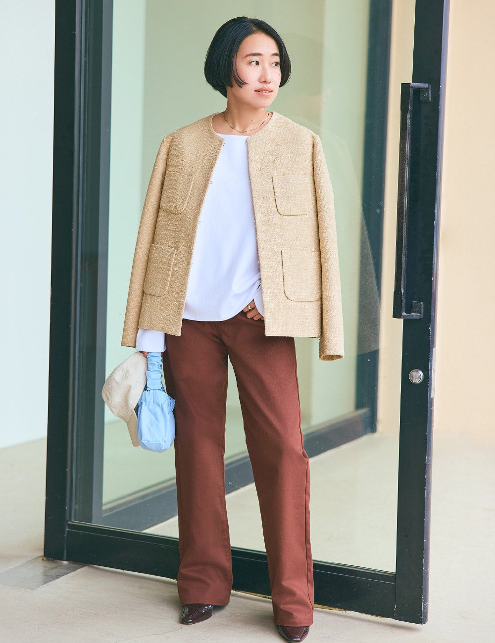 身長154cmの小柄を活かした、しゃれた着こなしをかなえるコツにも注目です。