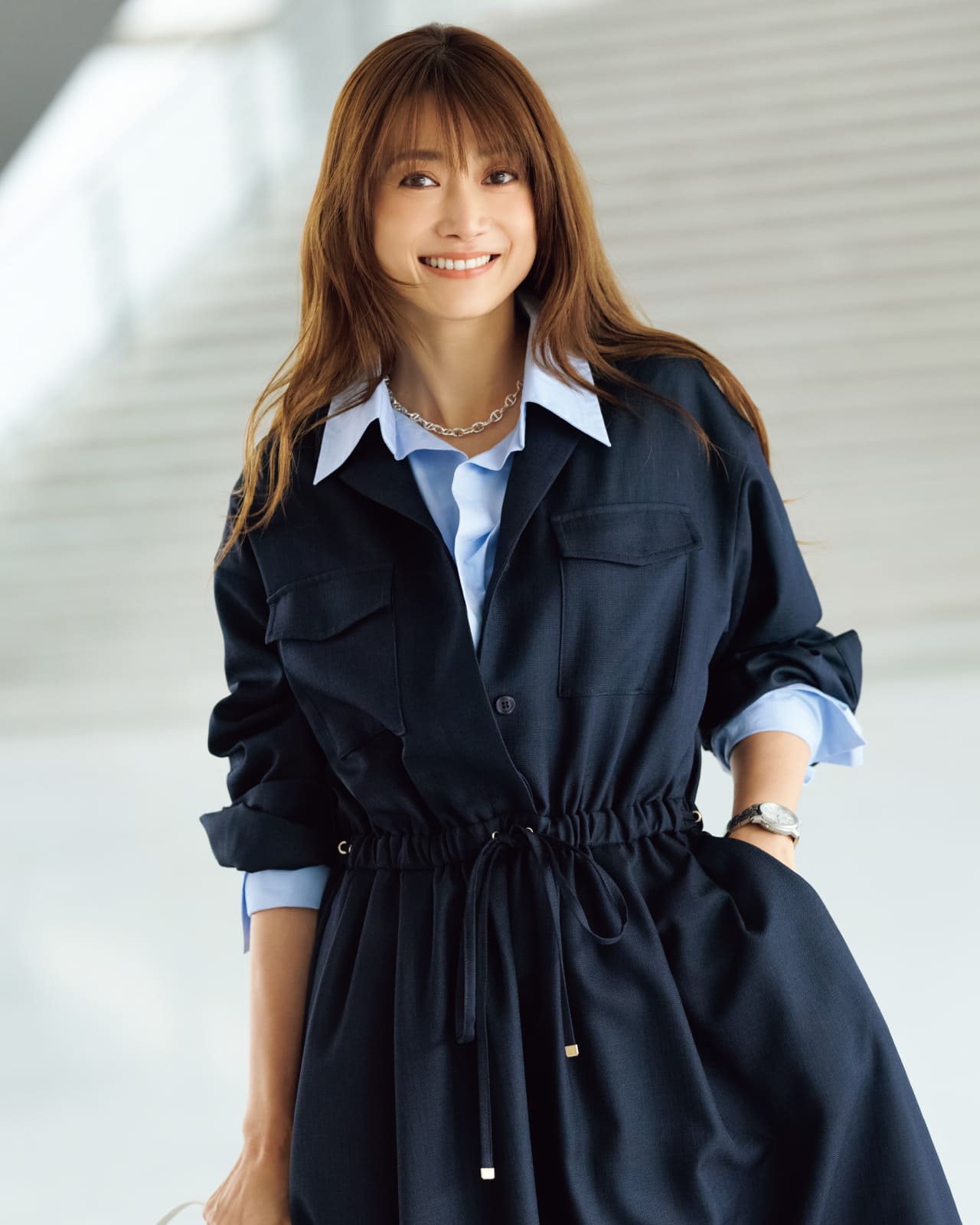 ロングシーズン重ね着スタイルが楽しめる1着。