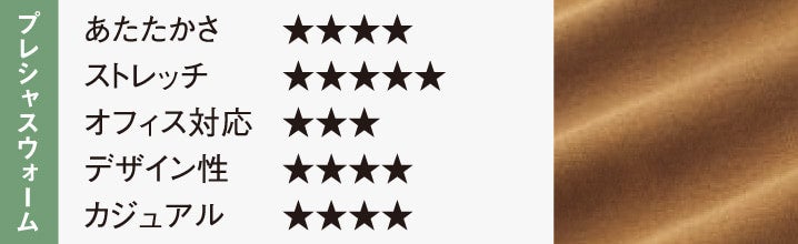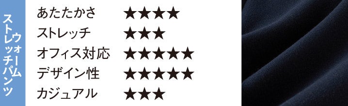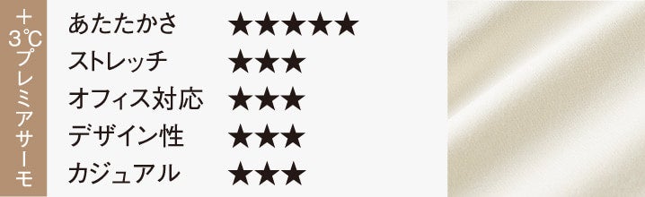 寒がりさんから絶大なる人気を誇る「プレミアサーモ」ストレッチパンツ。身体の発する湿気や水分を熱に変換する吸湿発熱素材を採用し、素肌にひんやり感のない裏起毛仕立てに。ほど良く肉厚でハリのある素材は、ボディラインが響きにくいのも魅力です。