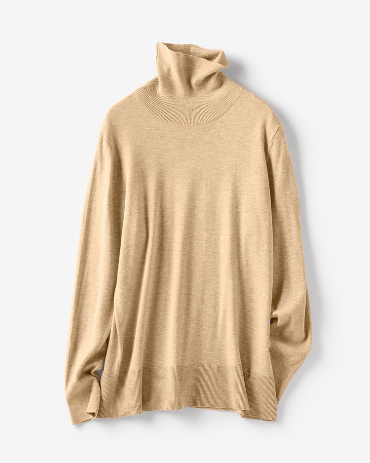 モードな印象を中和してくれるキャメルがおすすめ。