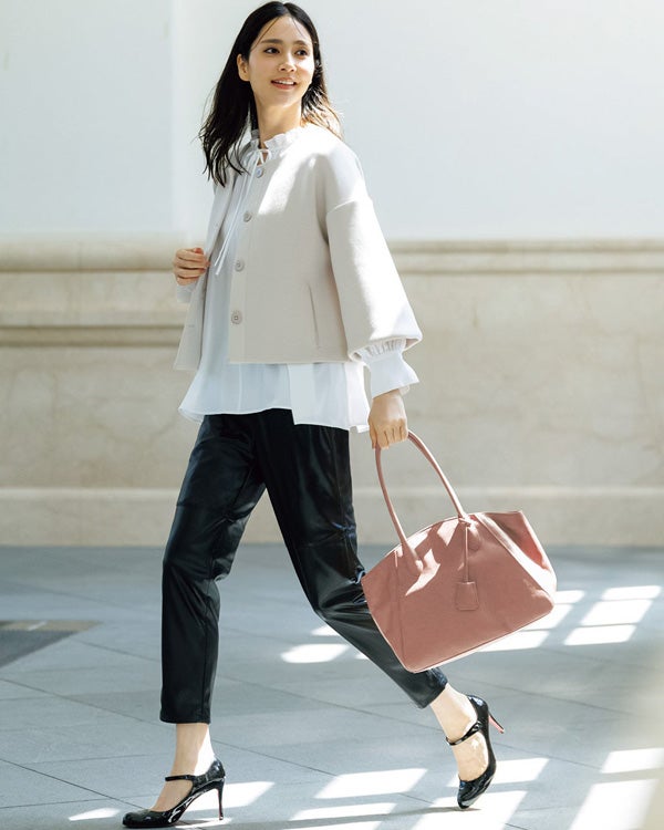ストレッチジョーゼット・スタンドボウタイブラウス