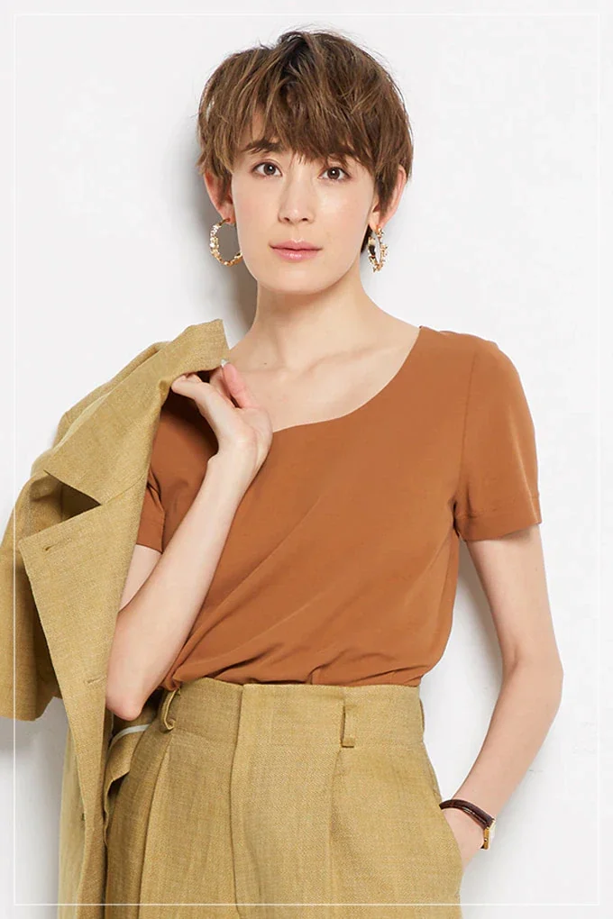 ジャケットインにはもちろん、単品でも品格スタイルを叶える上品Tシャツです。